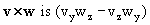 The vector product of two 3-vectors, v and w, written