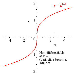A function which jumps is not differentiable at the jump nor is one which has a cusp, like |x| has at x = 0.