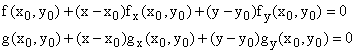 We must solve the two linear equations in x and y that state that the linear approximations to f and to g defined at (x0, y0) both are 0.