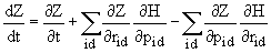 If we choose a function Z of the position and momentum variables here its time dependence can be computed by the chain rule as
