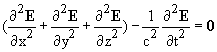 This equation, which both B and E obey in empty space, is called the wave equation. It is a partial differential equation and looks quite formidable, but it is quite easy to find solutions. If you choose any direction in space, and call it the x direction, then any vector function of the variable x - ct, (and any function of x + ct) will obey it.