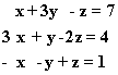 and we wish to find a solution, by which we mean to find the explicit values of x, y and z which make these equations all true.