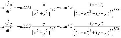(The second terms are the effects of another planet whose position will obey similar equations.)