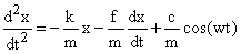 =(-$B$3*(B20+(A21-A20)*C20)-$B$4*(C20+(A21-A20)*D20)-$B$6*SIN($B$7*A21))/$B$2 |