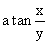 The value, y, of the inverse function to tangent at argument x. Means x = tan y. |