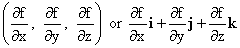 function f with respect to x, y and z: |